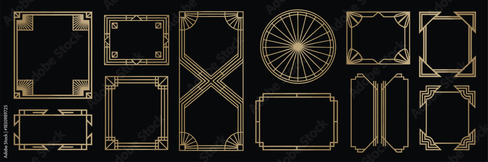 Geometria - Luxury Art Deco Ornament Collection Featuring Golden Geometric Frames, Headers, Dividers, And... #1830989725