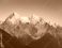 • snowy peaks of meili snow mountain range kawagebo yunnan china at sunrise with warm golden light illuminating the sharp rugged snow capped peaks against a clear sky