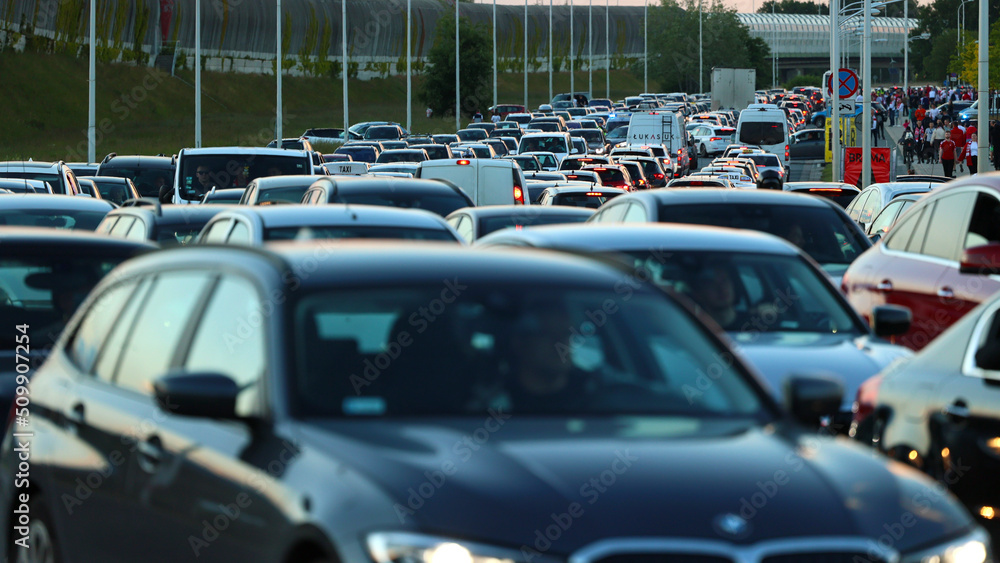 Fototapeta Pojazdy - Wieczorne korki samochodowe podczas szczytu komunikacyjnego #509907254