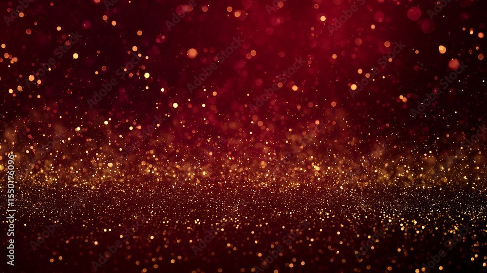 Obraz do Biura - Intensywne czerwone tło z unoszącymi się i rozproszonymi złotymi drobinkami brokatu. Idealne na... #1550176096