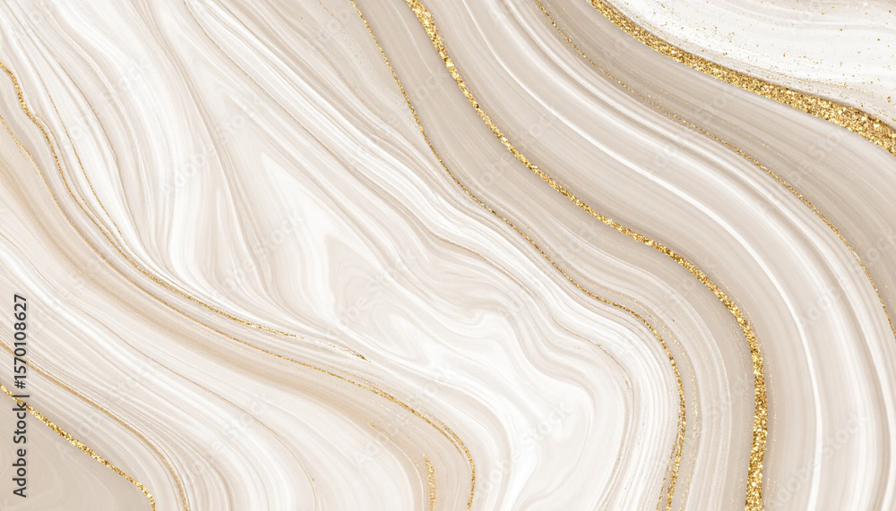 • Beżowe tło abstrakcyjne do projektu, tekstura marmuru, wzór w kształcie fal, tapeta