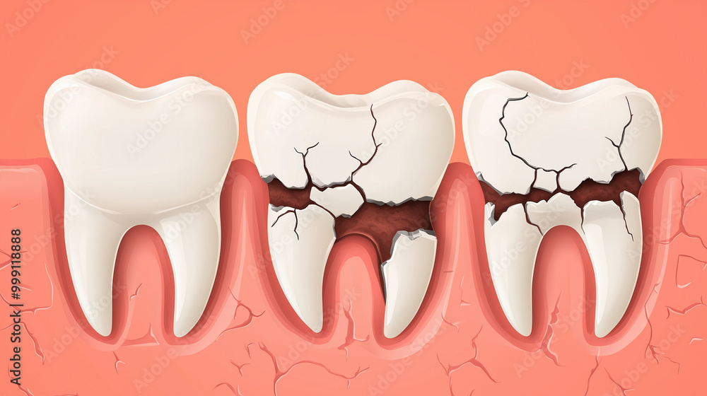Obraz do Dentysty - Różne rodzaje uszkodzeń zębów, w tym pęknięcia i złamania. Obraz ma na celu edukację pacjentów na... #999118888