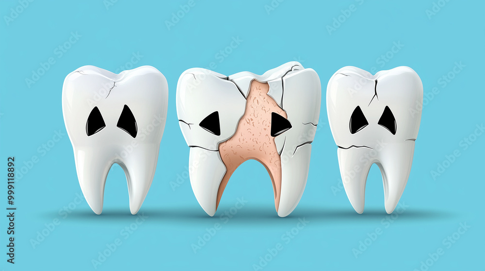 Obraz do Dentysty - Różne rodzaje uszkodzeń zębów, w tym pęknięcia i złamania. Obraz ma na celu edukację pacjentów na... #999118892