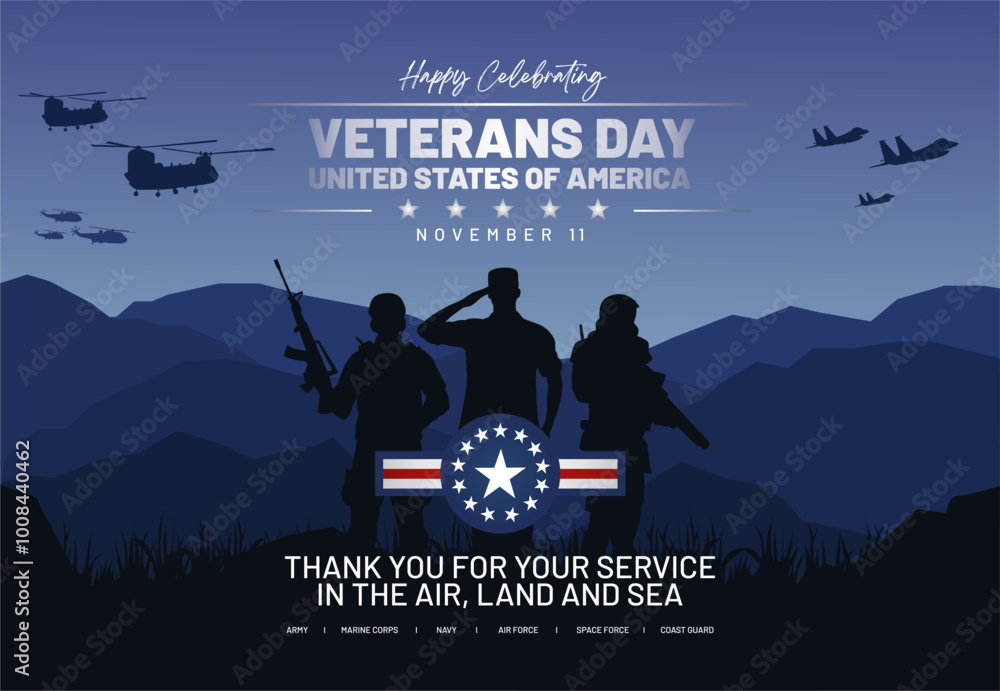 Obraz do Gabinetu Weterynaryjnego - Happy veterans day 11th november 2024 celebration concept background. Dramatic view of US soldier... #1008440462