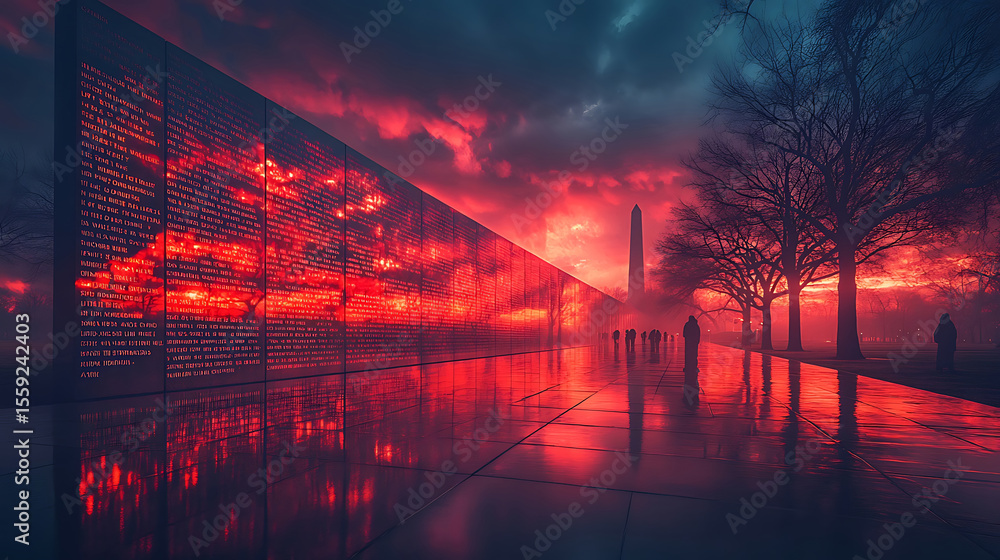 Obraz do Gabinetu Weterynaryjnego - Reflective vietnam veterans memorial wall at sunset honors sacrifices in washington dc #1559242403