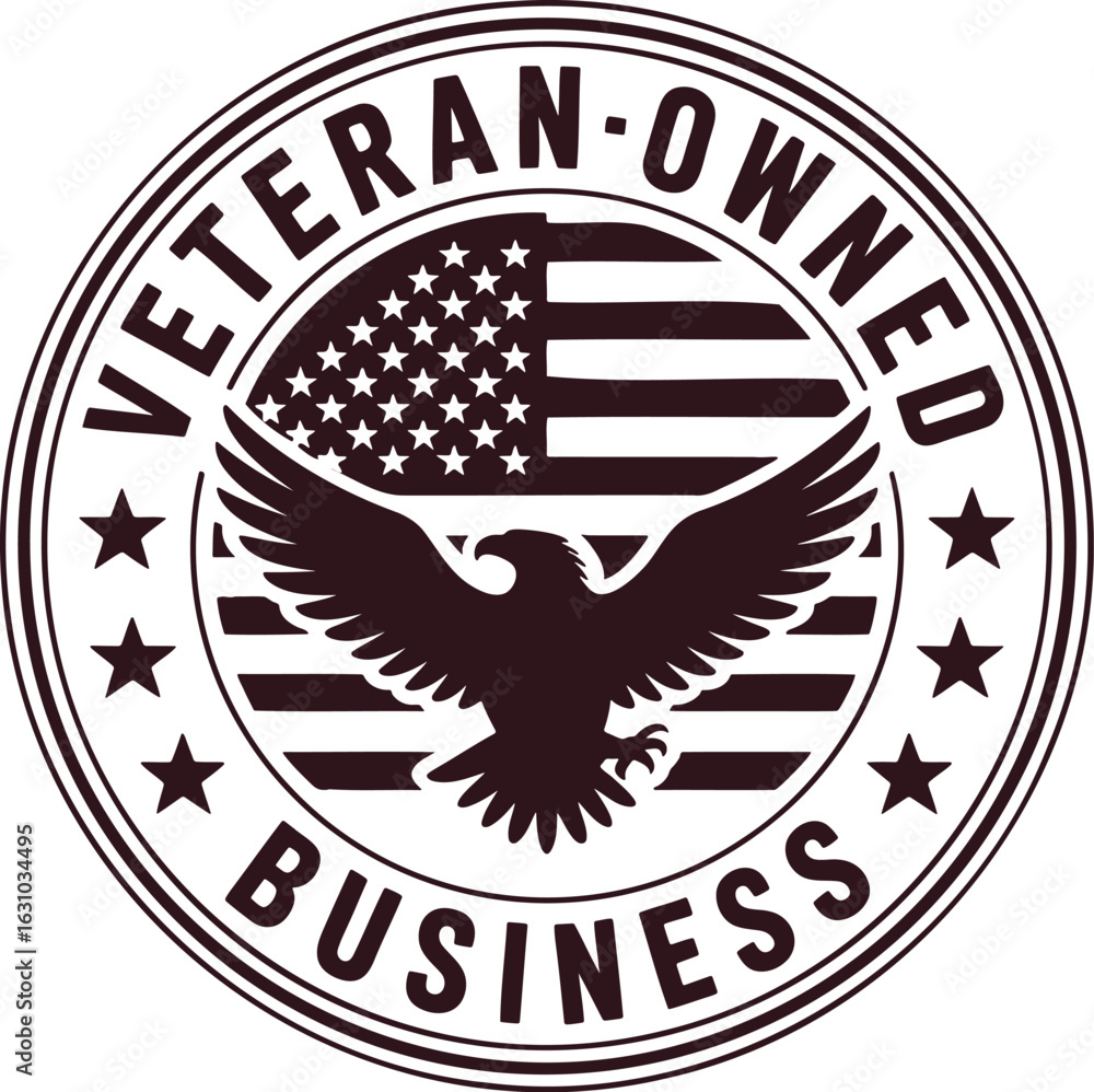 • Veteran owned business emblem with american flag and eagle