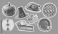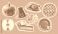 • thanksgiving elements collection, pilgrim hat, pumpkin, traditional pie, maple leaf, roasted turkey, retro halftone set, autumn vintage stipple effect style illustration