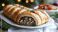 • Delicious mushroom and meat pie in puff pastry, garnished with cranberries and fir branches, served on a white platter for Christmas dinner.