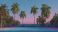 • Cancha de tenis rodeada de palmeras al atardecer paisaje tropical con tonos pastel, tenis aesthetic, tenis vaporwave, tenis old money