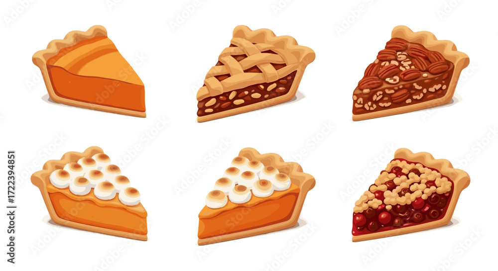 Obraz do Gabinetu Weterynaryjnego - Illustration showing six slices of different types of pie on white background #1722394851