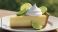 • A slice of creamy pie with lime slices and whipped cream on a plate, outdoors
