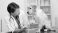 Obraz do Gabinetu Weterynaryjnego - vet holding puppys paw during attentive exam with soft indoor lighting #1849794215