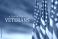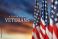 • American flags with Text Thank You Veterans on sunset background. American holiday banner.
