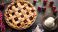 • Freshly baked cherry pie with lattice crust and ice cream