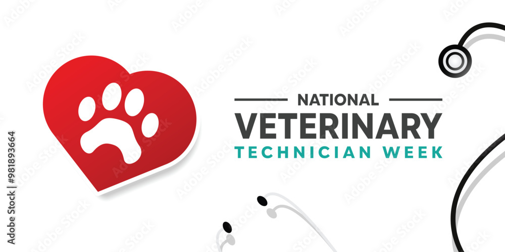 • Veterinary Technicians Week. Pet icon, heart and stethoscope. Great for cards, banners, posters, social media and more. White background.