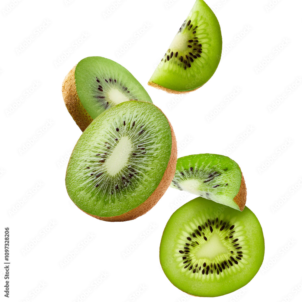 • Floated Slices of Kiwi Falling Isolated on Transparency Background PNG