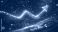 • glowing orange upward arrow with digital light trails rising over a flowing blue abstract wave background conveying growth and progress