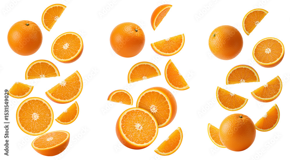 Obraz do Kuchni - orange slices falling down set PNG. whole oranges and orange pieces flying isolated. Fresh and... #1531549029