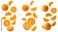 • orange slices falling down set PNG. whole oranges and orange pieces flying isolated. Fresh and organic orange fruit scattered PNG. Citrus fruit orange isolated