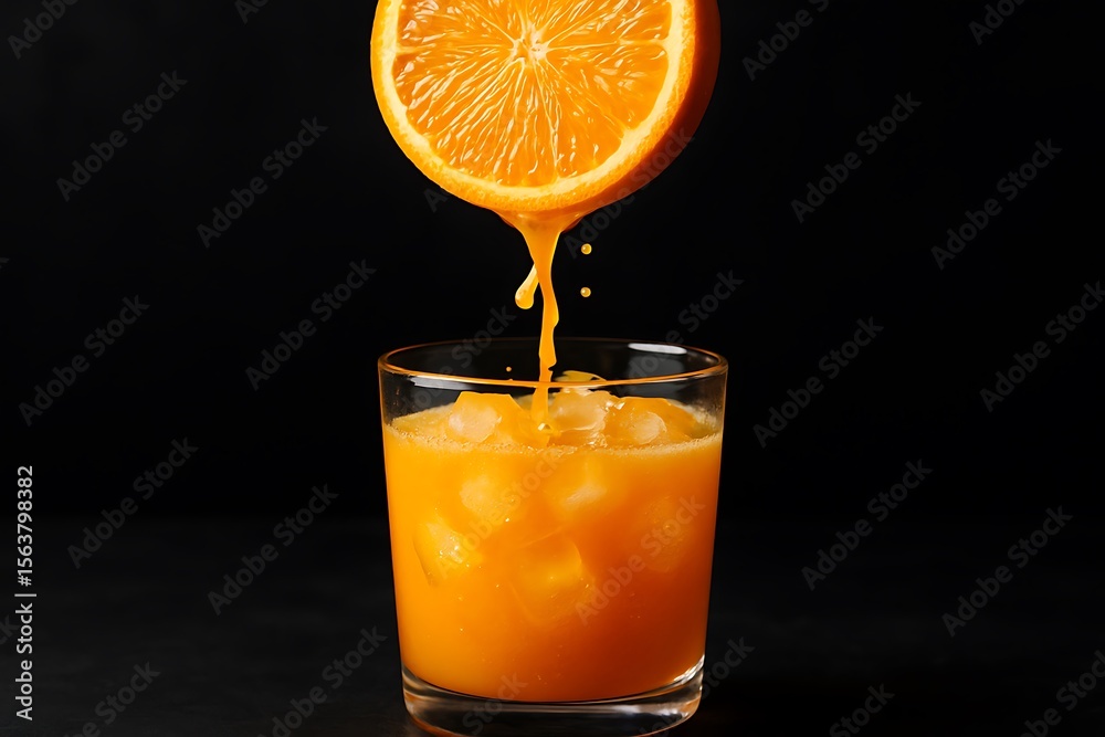 Obraz do Kuchni - Fresh orange juice being squeezed into a glass with ice #1563798382