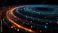 3D render, abstract digital background with glowing blue and orange dots forming a circular shape on a dark black backdrop Generative AI