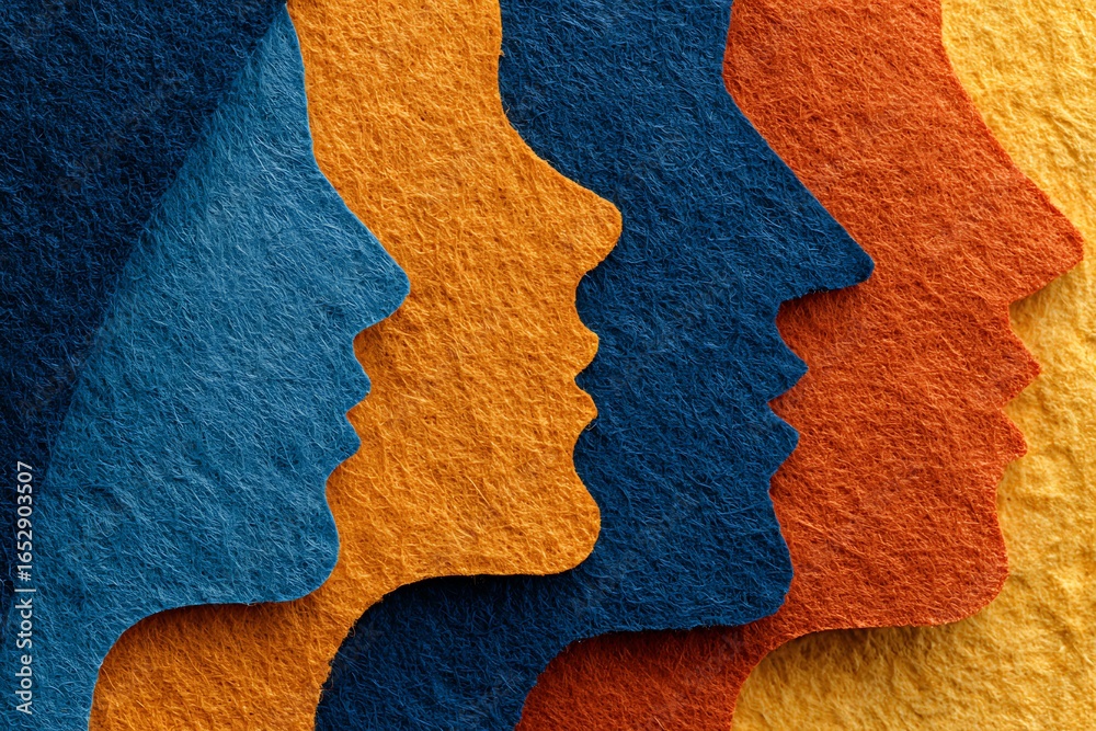Obraz do Kuchni - Blue orange profile silhouettes layered textured yellow #1652903507