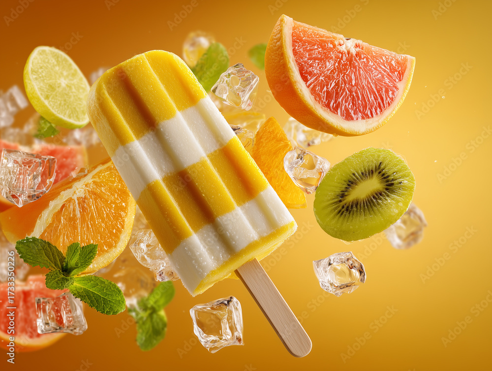 Obraz do Kuchni - Fresh orange kiwi popsicle frozen dessert design #1733350226
