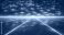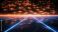 Futuristic cityscape with a blue sky and orange and blue lights. The city is filled with tall buildings and bright lights, creating a vibrant and energetic atmosphere