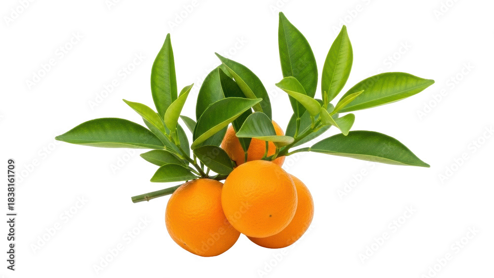 • Isolated mandarin orange branch with leaves, vibrant and fresh, citrus fruit still life
