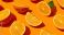 Close-up studio shot of sliced oranges and orange halves on matching orange surface