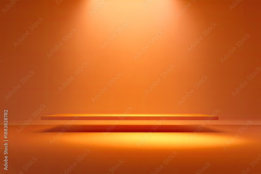 • Rendered studio background with illuminated empty floating shelf and orange lighting