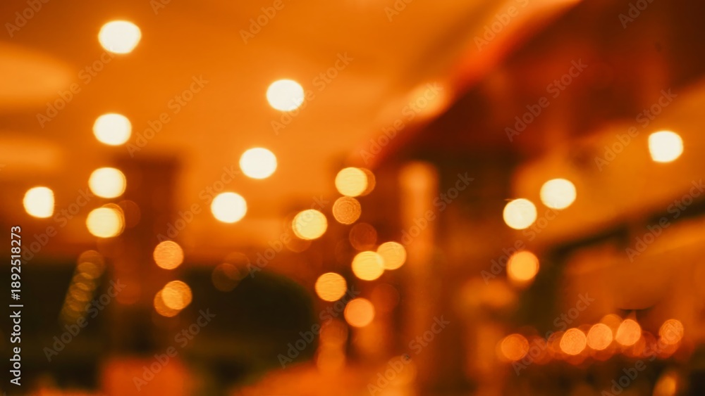 • Golden orange bokeh lights blurred background for festive atmosphere