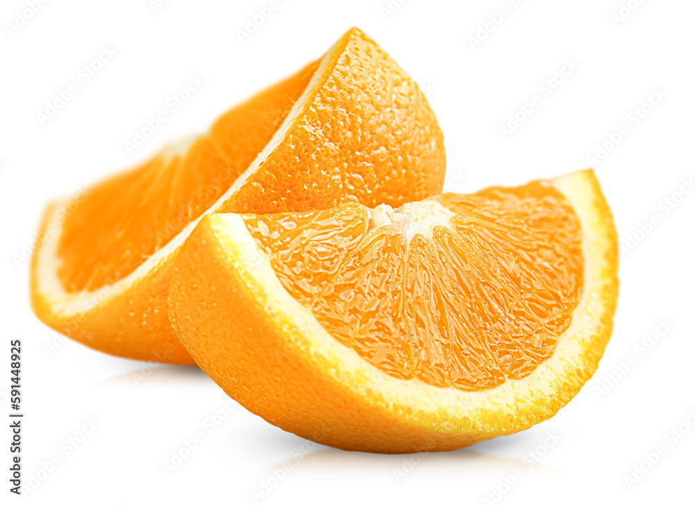 • two fresh orange slices on a white isolated background