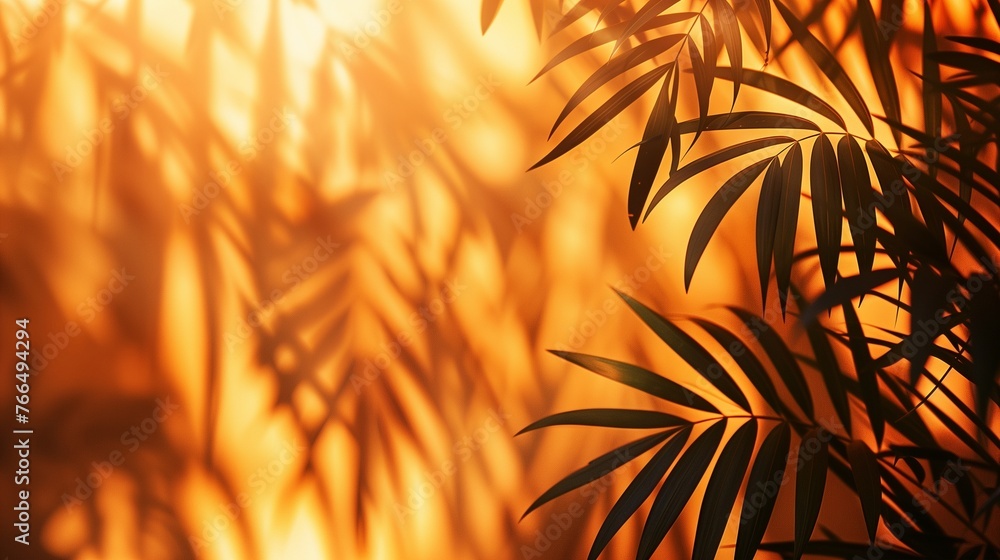 Obraz do Kuchni - A leafy tree silhouette on a bright orange sunset background. #766494294