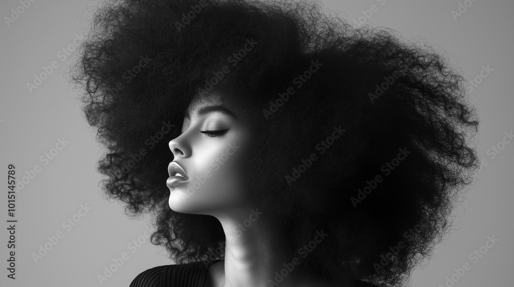 • Modelka o olśniewającej urodzie prezentuje się w wyrazistej stylizacji, w której jej ogromne, bujne włosy przyciągają wszystkie spojrzenia.