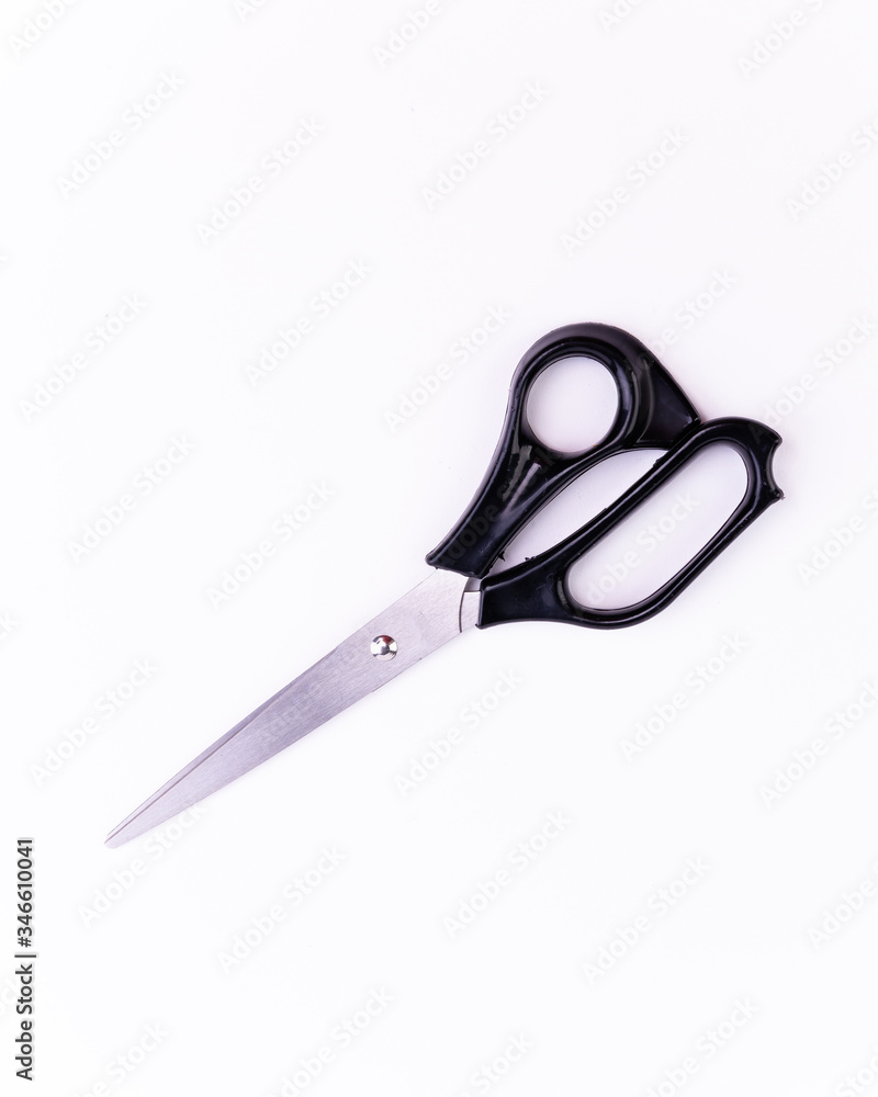 • Czarno srebrne duże nożyczki na białym wyizolowanym tle.