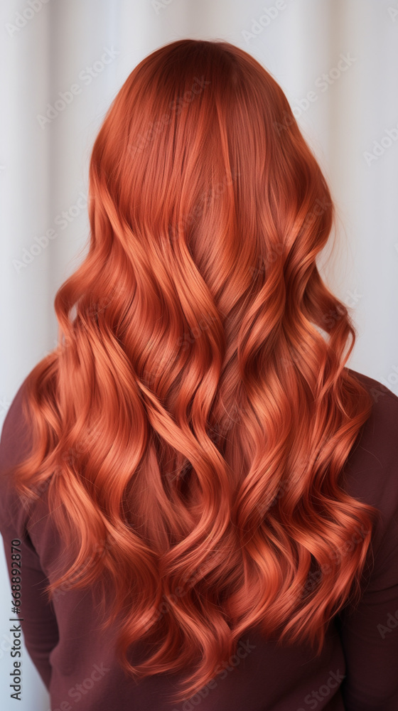 Obraz do Salonu Fryzjerskiego - Fryzura - piękne pofalowane i długie włosy kobiety w kolorze rudym #668892870