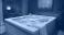 • A white jacuzzi tub with blue water and bubbles, a white towel, and a plant in a pot sits in a spa setting.
