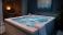 Obraz do SPA - A white jacuzzi tub with blue water and bubbles, a white towel, and a plant in a pot sits in a... #1039642120