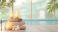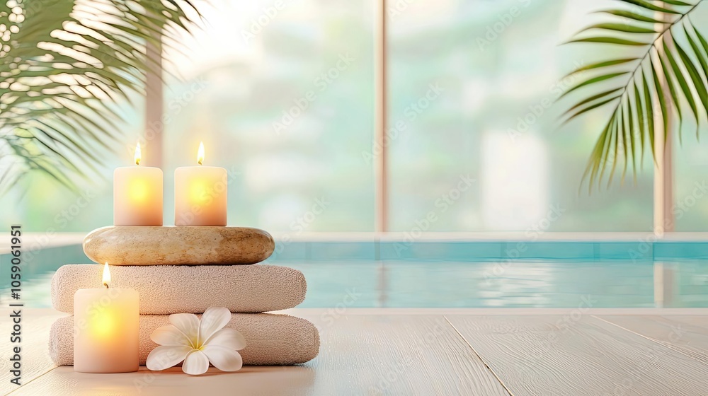 • Soothing spa room with natural healing props and glowing candles, 3D illustration