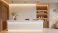 • Contemporary spa reception area with ambient lighting, serene environment