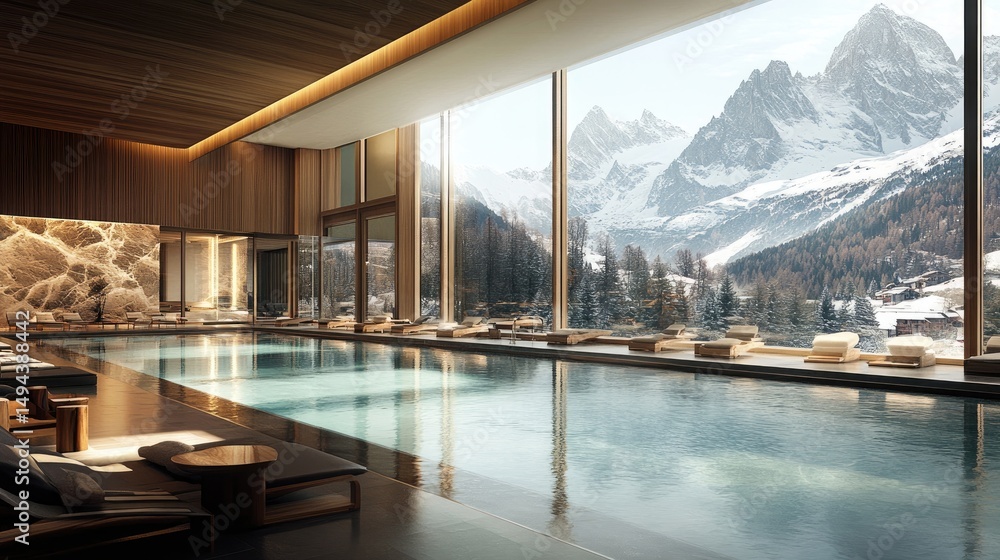Obraz do SPA - Modern spa interior with breathtaking mountain views. #1494388442