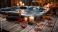 • Relaxing autumn spa scene with candles, towels, and fall leaves surrounding a hot tub. .
