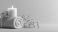 • Relaxation essentials candle and towel arrangement in soft pink spa setting minimalist view