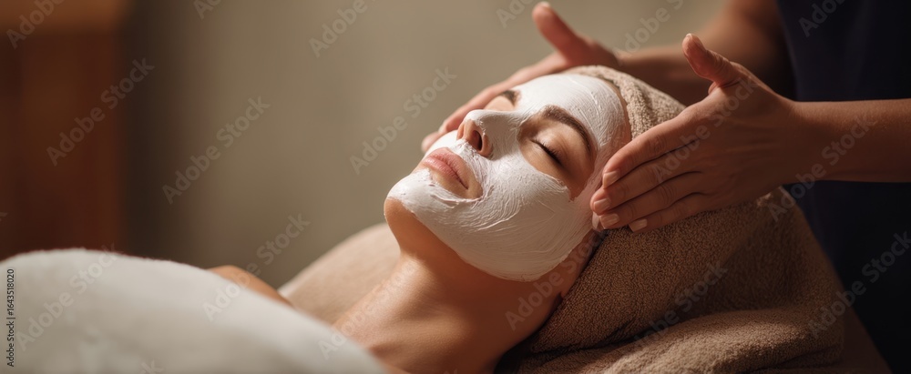 • The relaxing facial treatment enhancing beauty and rejuvenation in a serene spa environment.