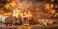 • Autumn spa scene with candles, relaxing atmosphere, fall foliage