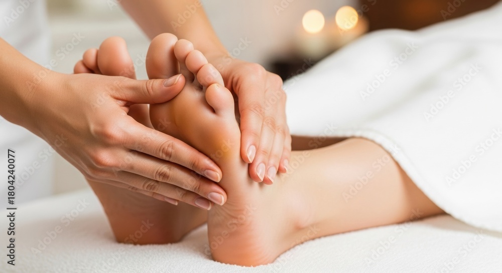 Obraz do SPA - Close-up of a relaxing foot massage session showing therapist hands applying gentle pressure for... #1804240077