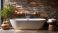 • a serene bathtub scene highlighting elegant bathroom fixtures and natural stone walls for a relaxing home spa experience