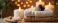 • Soft lit spa scene with stacked towels and lit candles. Pine cone and soap sit atop clean white and brown cloths. Relaxing ambiance for wellness.