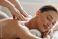 • Satisfied lady enjoying back and shoulder massage, spa therapist doing general body massage to young woman, closeup